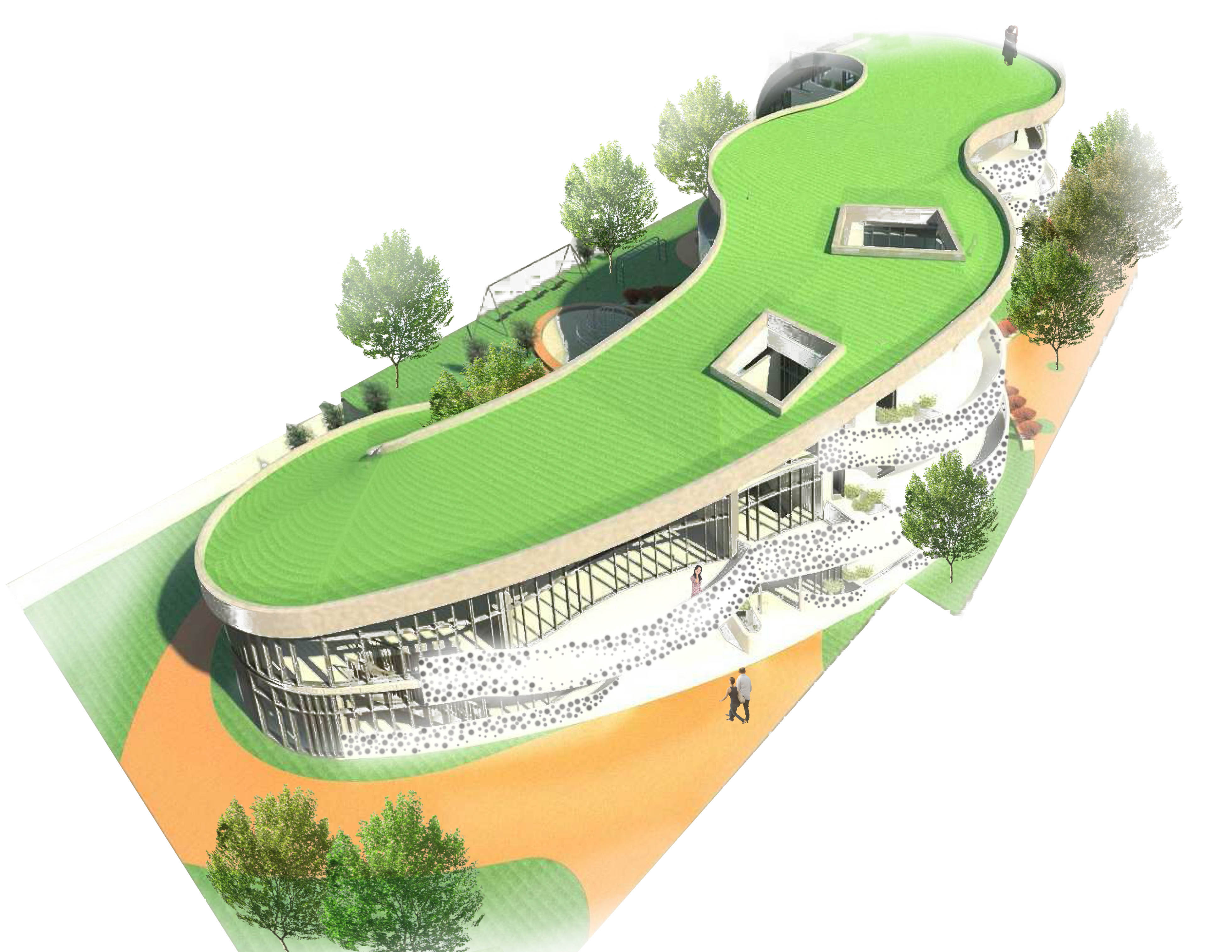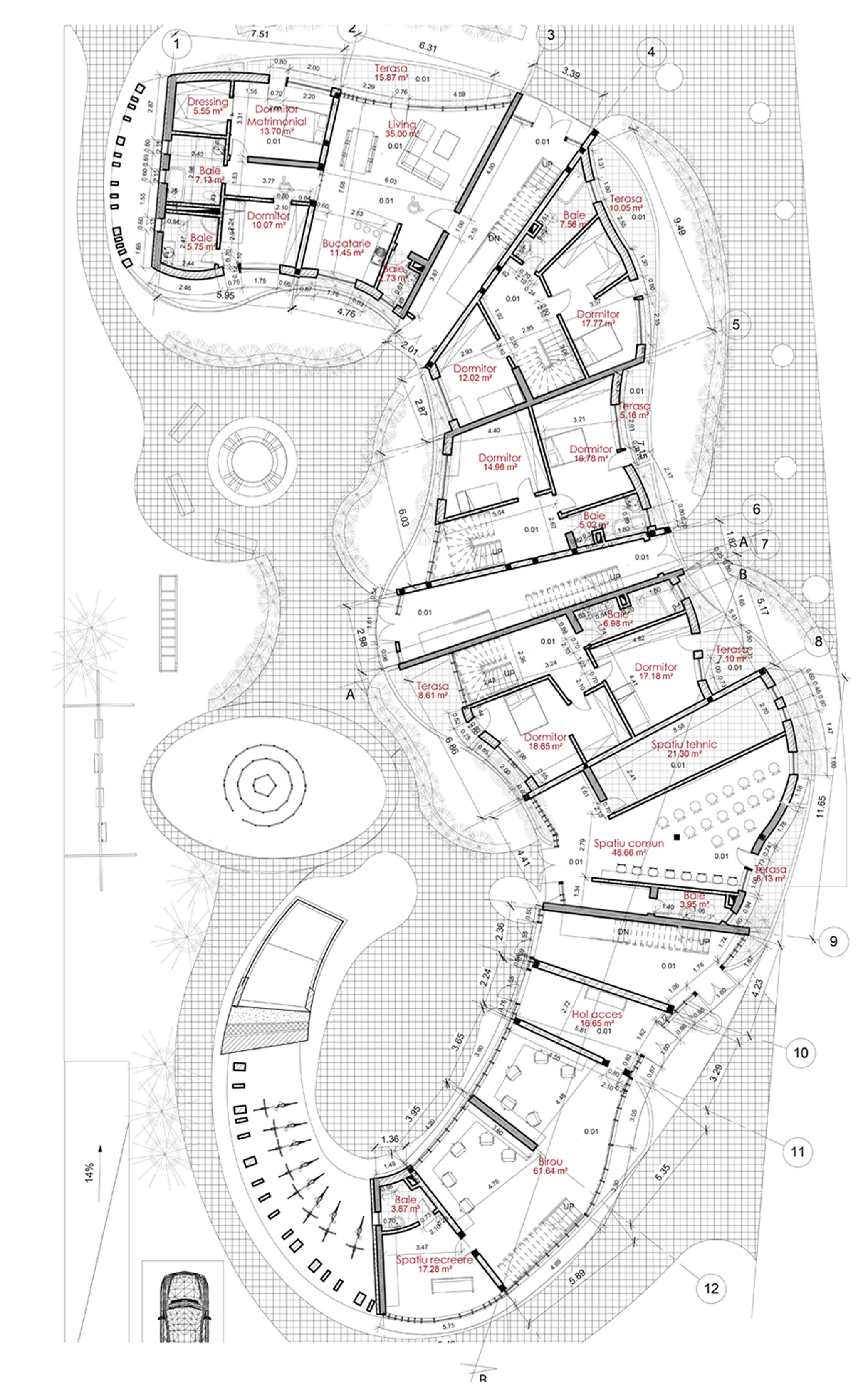 The concept of this project is developed around the idea of the equilibrium between family and career, offering a solution for living and working in the same place. There are some imposed conditions: sinuous route, marked by the alternation of closed spaces and open spaces, creating different emotions. The building contains one architecture office and ten apartments for the families of the architects who are working there. Each apartment has two levels, with N-S orientation and Bega river view.
