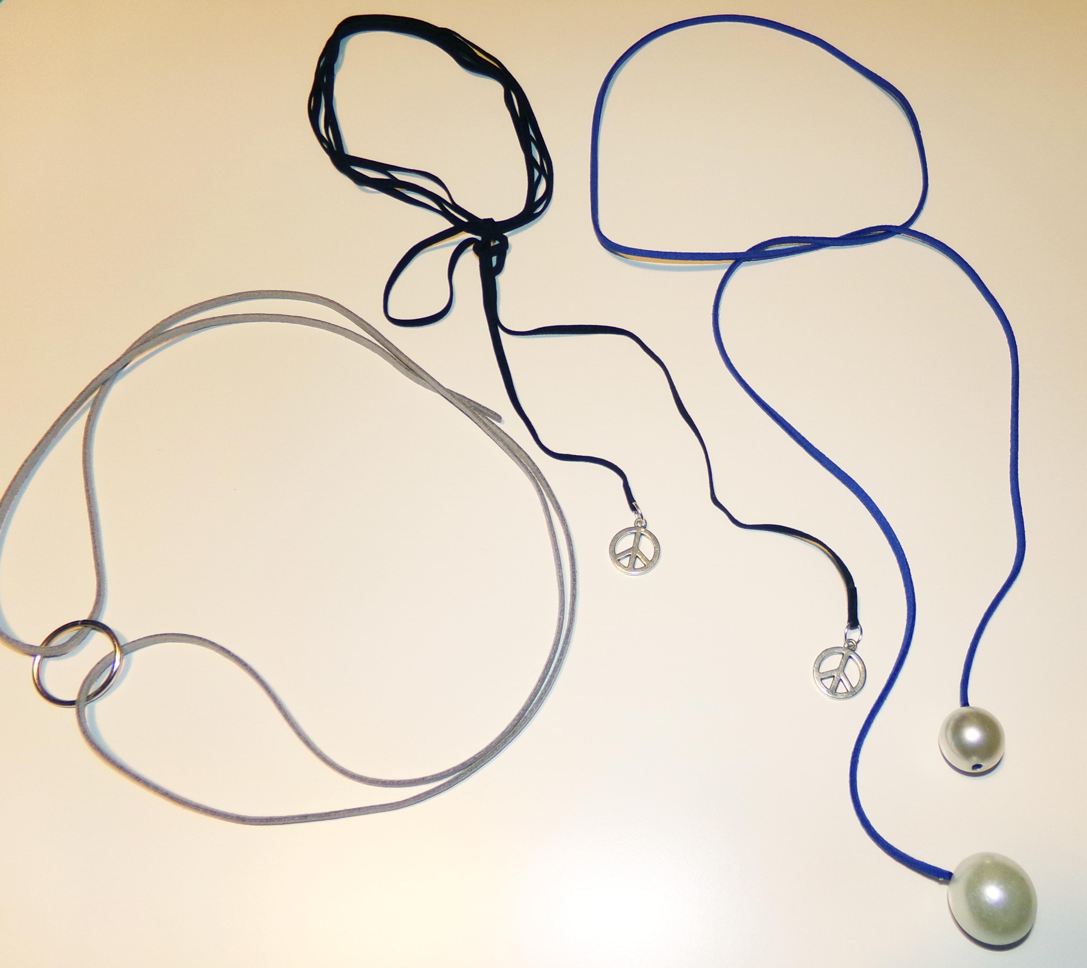 It’s very easy to make your own necklace, you just need aprox. 1 m of a leather string and some accessories like pendants or pearls for the string ends.